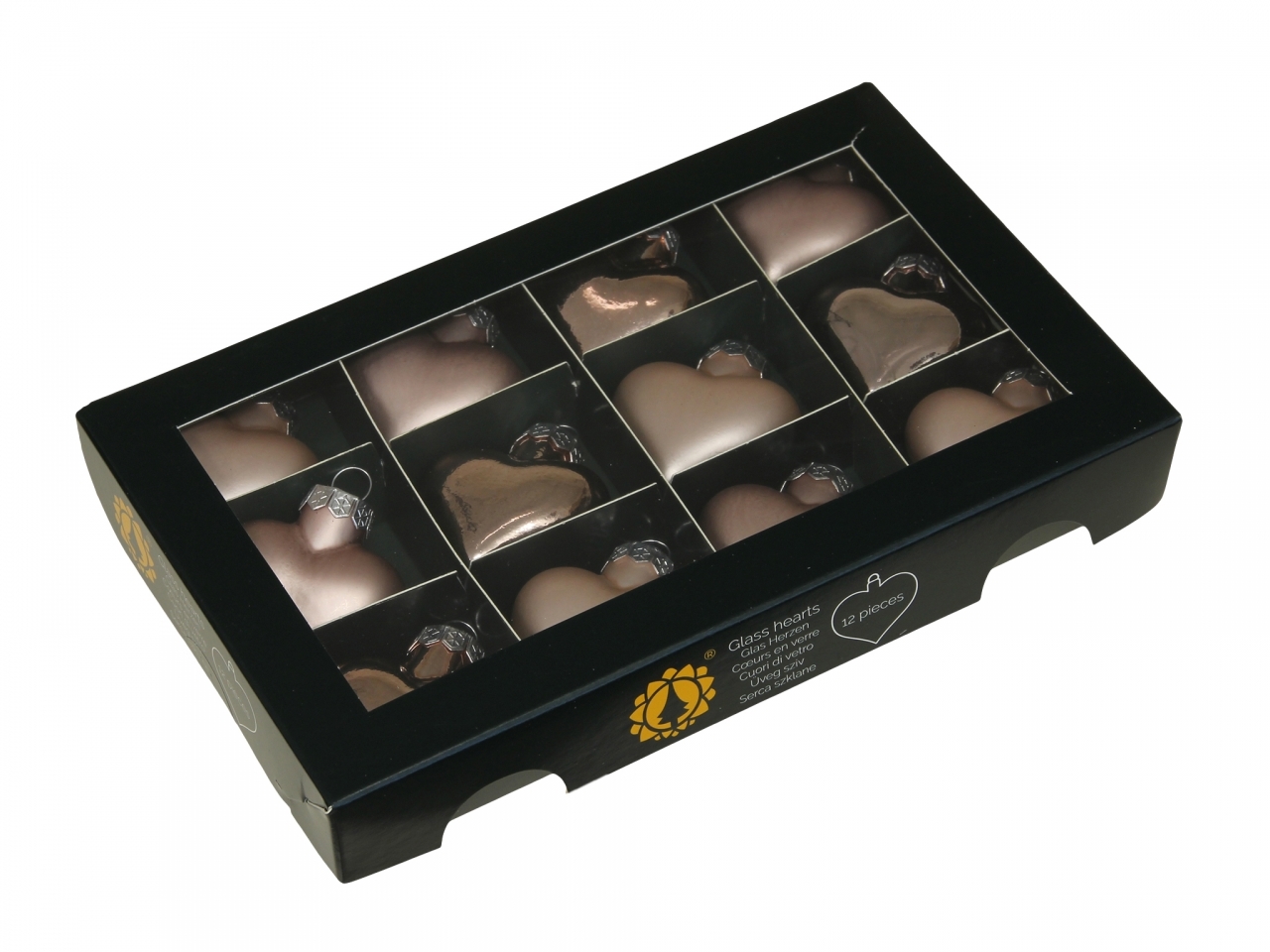 Sada 12 ks skleněných baněk - srdíček růžových kouřových. V sadě jsou lesklá a matná srdíčka. Materiál: skloRozměr:4 cm prečítať celé