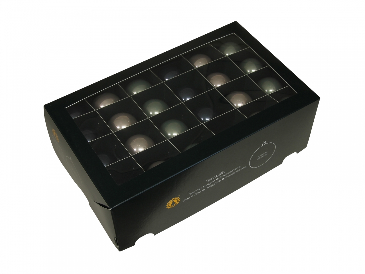 Sada 48 ks skleněných baněk barvy jalovce. Materiál: skloRozměr:průměr 4 cm prečítať celé
