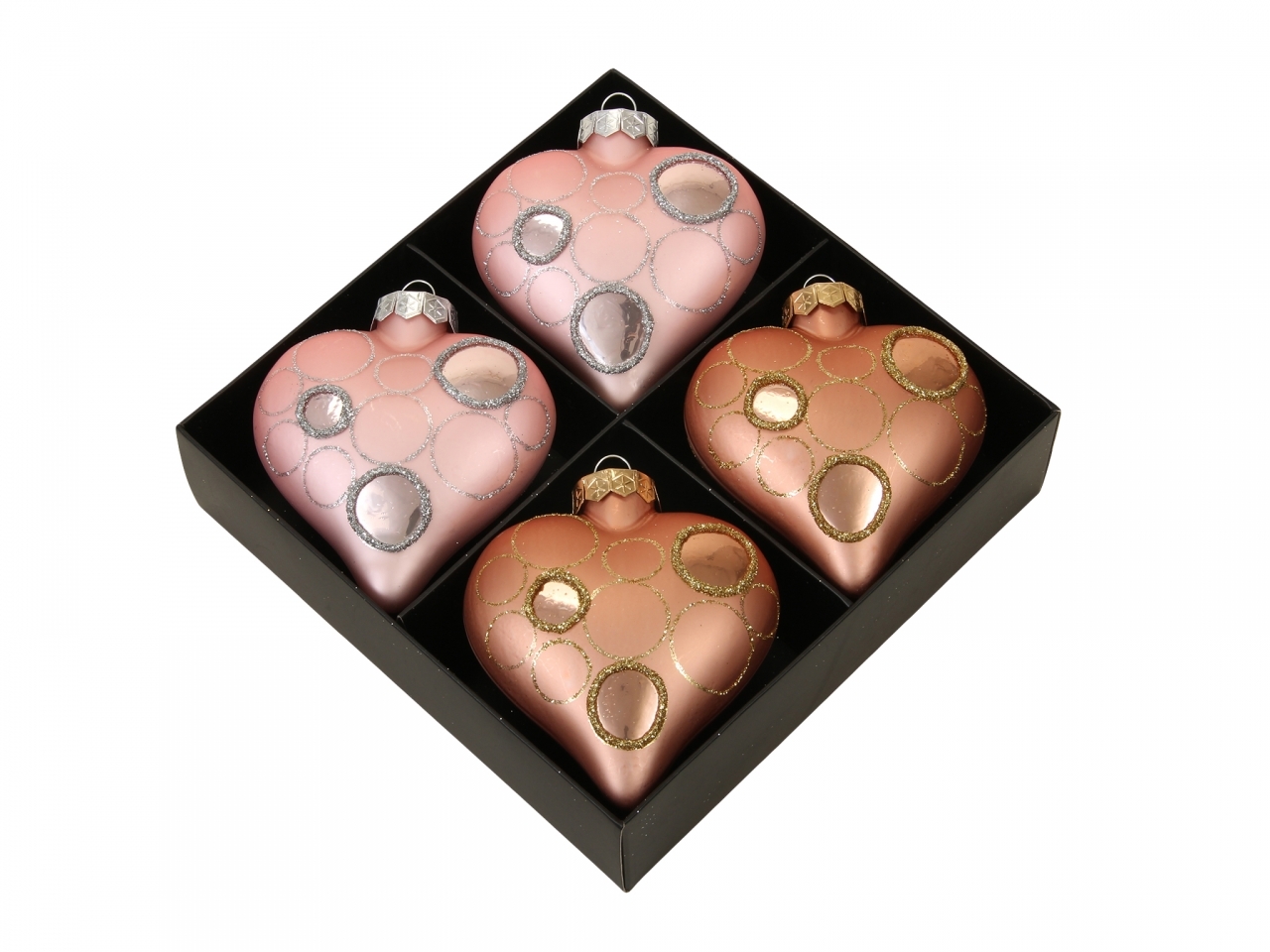 Baňka srdce 8x9 cm, sada 4 ks, barva coral
