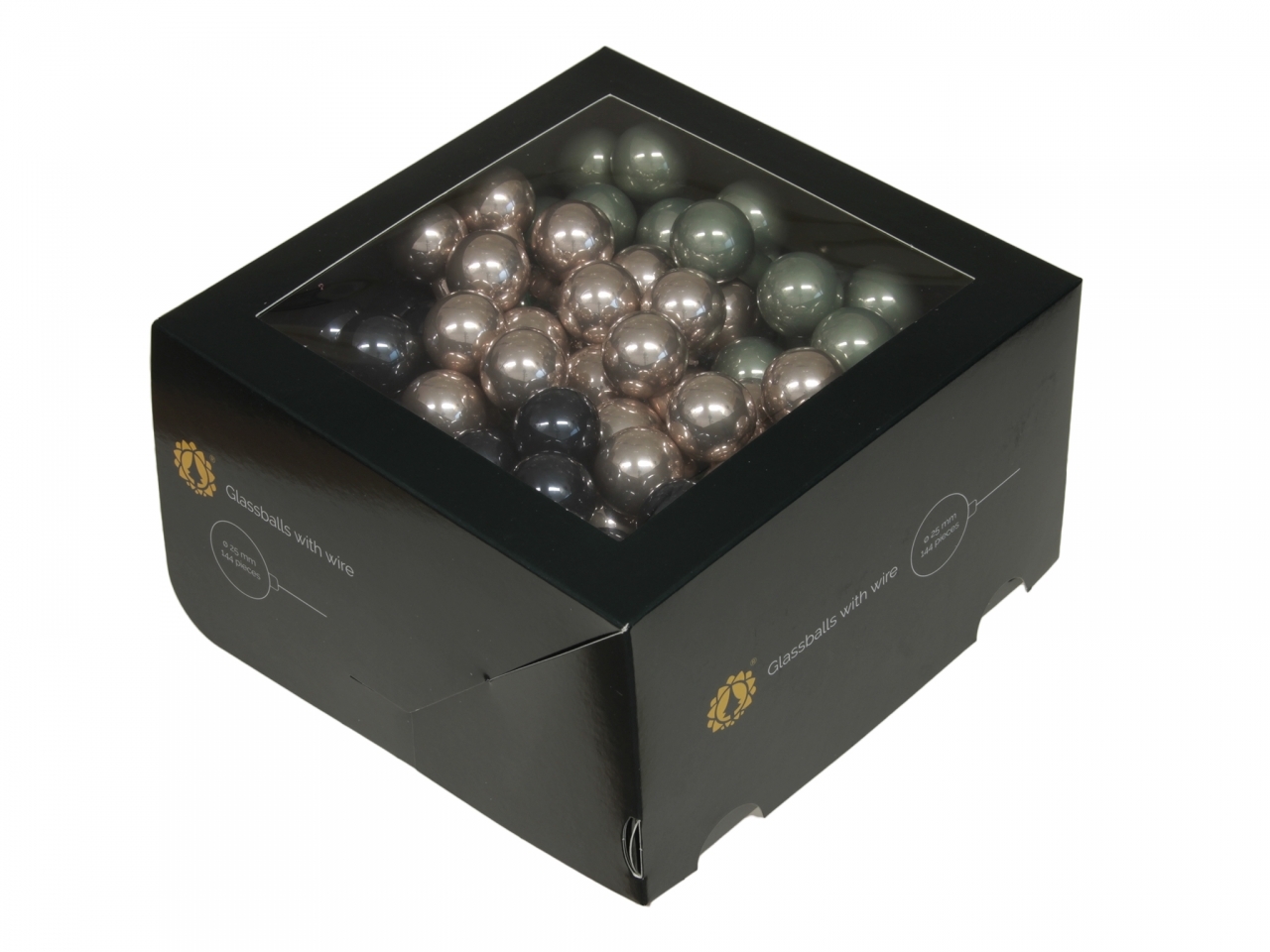 Skleněné baňky jalovec 2,5 cm, sada 144 ks