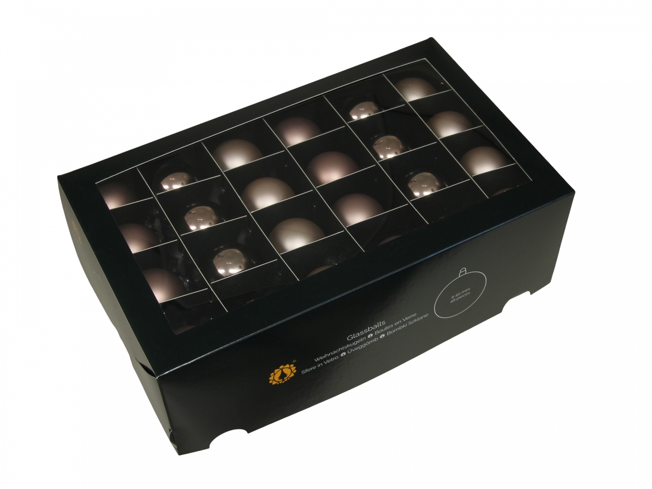 Sada 48 ks skleněných baněk růžových kouřových. V sadě jsou matné a lesklé baňky.Materiál: skloRozměr:průměr 4 cm prečítať celé