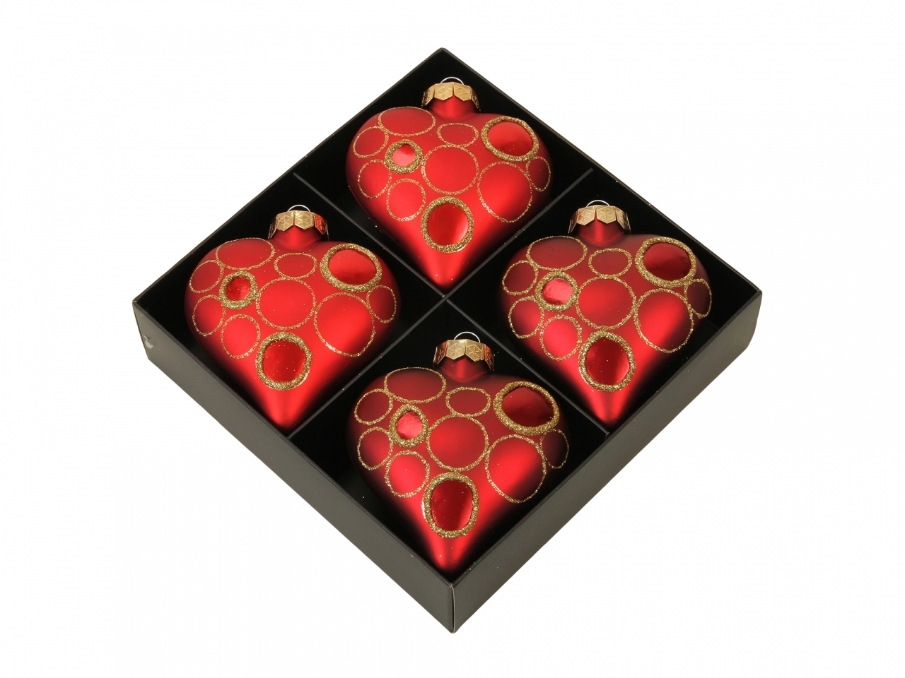 Baňka srdce 8x9 cm, sada 4 ks, barva červená