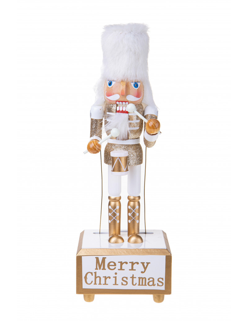 Soška dřevěného Louskáčka s hrací skříňkou a pohybem rukou