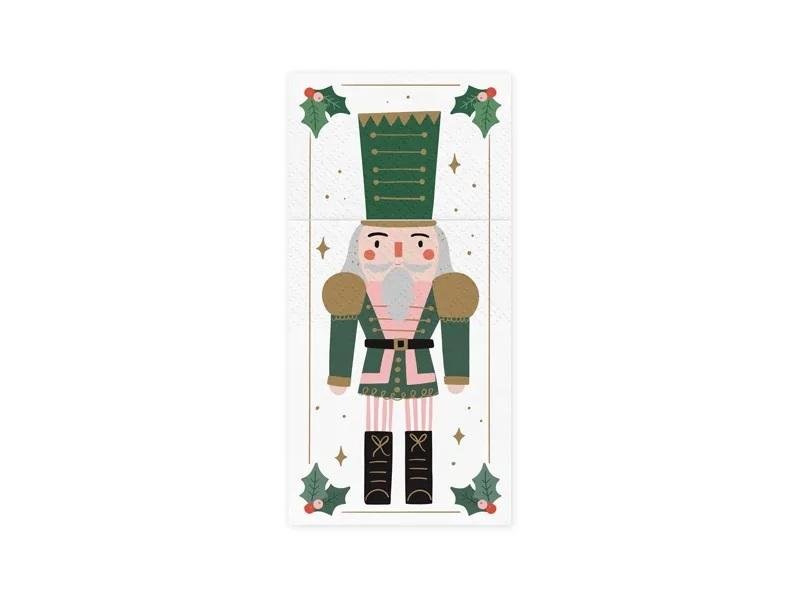 Serwetki papierowe z kieszonką na sztućce Dziadek do orzechów, mix kolorów, wymiary złożonej serwetki ok. 10 x 20 cm.(1 op. / 6 szt.) prečítať celé