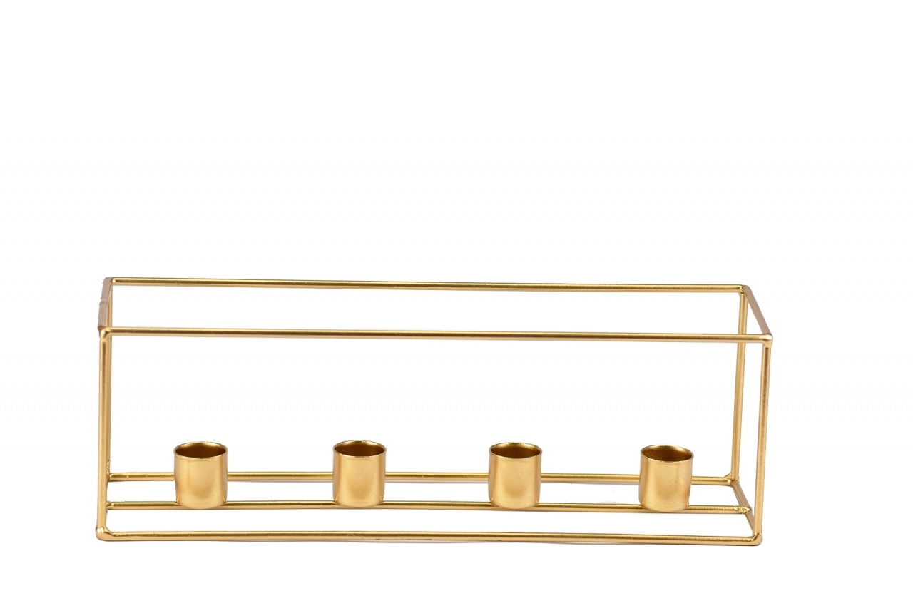 Moderní kovový svícen na 4 kónické svíčky.Materiál: kovRozměry:výška 10 cmšířka 30 cmhloubka 9 cmprůměr otvoru pro svíčku 2,2 cm prečítať celé