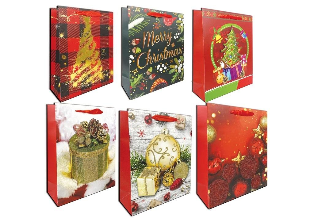 Torebka prezentowa ze świąteczną grafiką. Gramatura papieru 210, torebka laminowana folią mat z dodatkowym uszlachetnieniem (typu brokat/złocenie/srebrzenie/efekt 3D). Pakiet 6 wzorów po 2 sztuki. Wielkość: 260x320x100 mm (M) prečítať celé