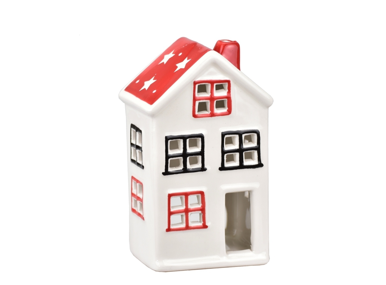 Keramický domek na čajovou svíčku, bílý 15x8,8x6,8 cm