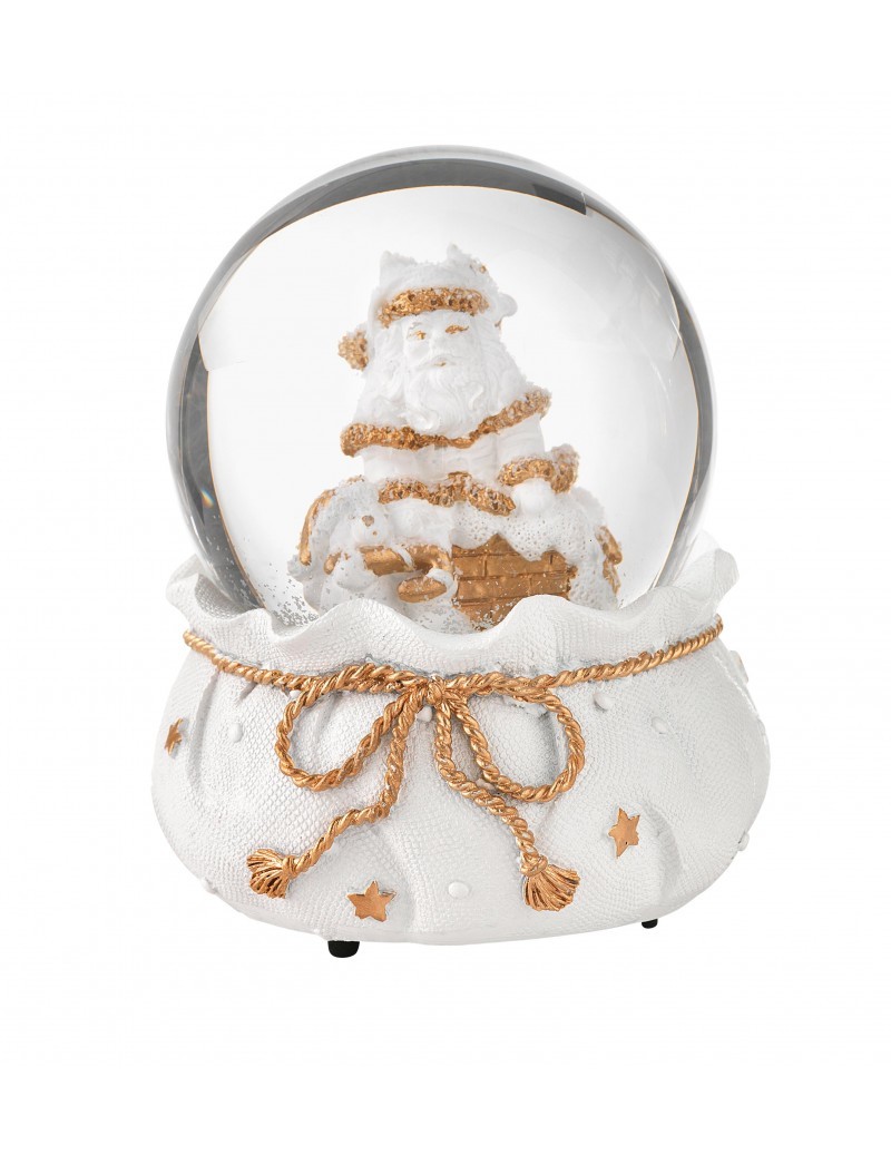 Vánoční sněžítko se Santou Clausem v bílé a zlaté barvě.