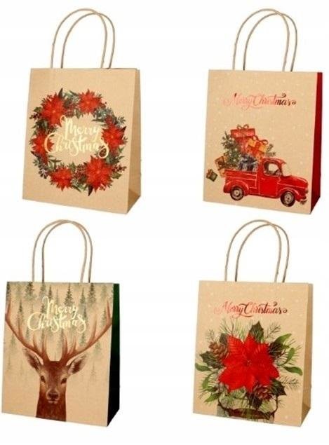 Torba prezentowa 26x32cm 4 sztuki zestaw eleganckich toreb prezentowych wykonane z wysokiej jakość papieru craft o gramaturze 150gsm papierowa pleciona rączka piękny świąteczny nadruk dodatkowo zdobione hot-stampingiem bardzo eleganckie zestaw 4 sztuk ( po 1 szt. z każdego...