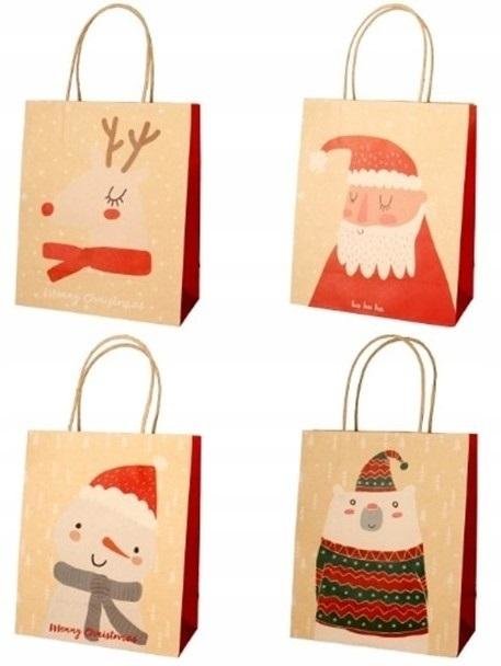 Torba prezentowa 26x32cm 4 sztuki zestaw eleganckich toreb prezentowych wykonane z wysokiej jakość papieru craft o gramaturze 150gsm papierowa pleciona rączka piękny świąteczny nadruk dodatkowo zdobione hot-stampingiem bardzo eleganckie zestaw 4 sztuk ( po 1 szt. z każdego...