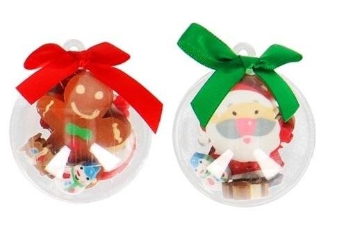 Zestaw gumek do mazania świąteczne kształty; zestaw 4 gumek do mazania - 2 duże i 2 małe w plastikowej bombce świąteczne kształty super pomysł jako drobny upominek np z okazji Mikołajek lub jako dodatek do prezentu bombki występują w miksie kolorów (czerwonym i zielonym ) - różnią...