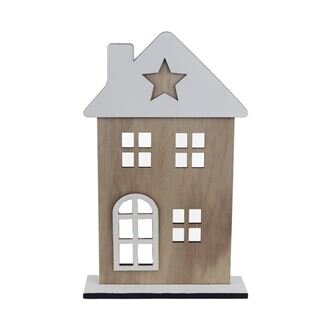 Dekorační domeček.Rozměry : 17,5 × 5,5 cm, výška 28 cm.Barva : kombinace přírodní, bílá.Materiál na bázi dřeva. prečítať celé