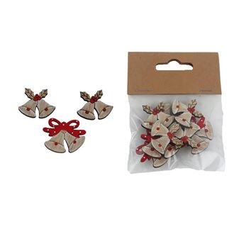 Sada dekoračních zvonečků.Sada obsahuje 8 zvonečků.Rozměry : 2,7 x 0,2 cm, výška 3,4 cm.Barva : kombinace hnědá, červená.Materiál na bázi dřeva. prečítať celé