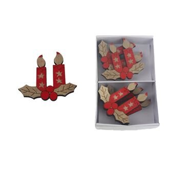 Sada dekorací ve tvaru svíčky.Sada obsahuje 6 dekorací.Rozměry : 5,5 x 0,5 cm, výška 5,3 cm.Barva : kombinace přírodní s červenou.Materiál na bázi dřeva. prečítať celé