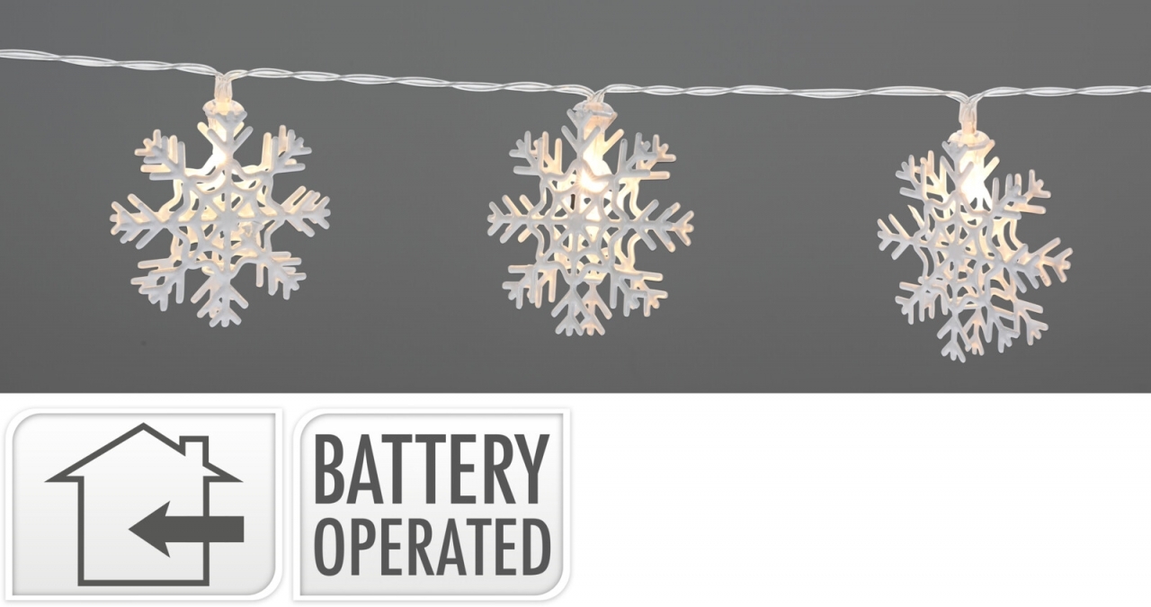 Dekorativní vánoční osvětlení s 10 LED diodami teplé bílé barvy. LED diody jsou ukryty ve sněhových vločkách. Délka přívodového kabelu 30 cm
