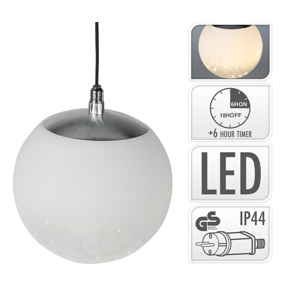 Dekorační osvětlení - svítící koule 18 cm bílá, 80 LED bílá teplá s časovačem