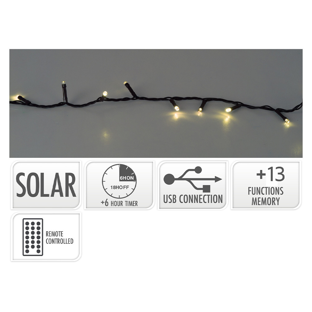 Světelný řetěz 480 LED bílá teplá se solárním panelem, délka 21 m