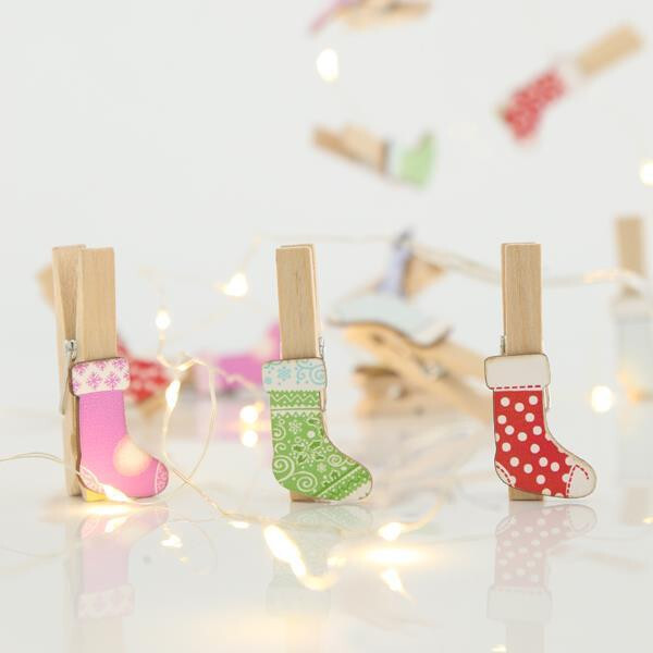 Světelný řetěz s dřevěnými ponožkami se sponou je vhodným doplňkem, který ve vaší domácnosti navodí kouzelnou vánoční atmosféru. Tyto dekorace z plastu, dřeva a mědí osvětlené dvaceti mini LED žárovkami. Hledáte-li dekoraci, která ozdobí váš dům či byt v čase vánočním, světelný řetěz s dřevěnými...
