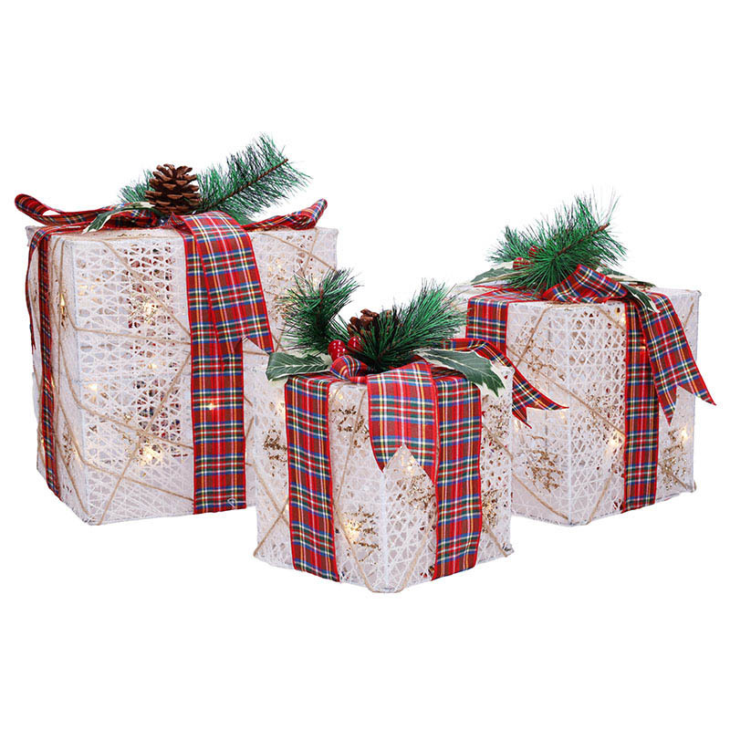 Solight sada 3 LED vánočních dárků, 48x LED, IP44, 230V