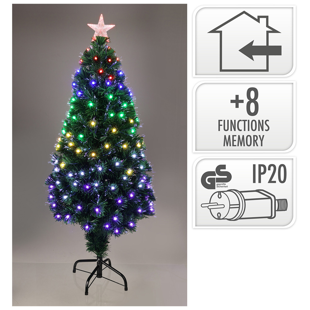 Svítící vánoční stromek s hvězdou na vrcholu, vysoký 120 cm, s kovovým stojanem.135 RGB LED /červená, modrá, zelená, bílá teplá a fialová8 režimů svícení s pamětínapájecí adaptér 230Vpouze pro vnitřní použití (krytí IP20) prečítať celé