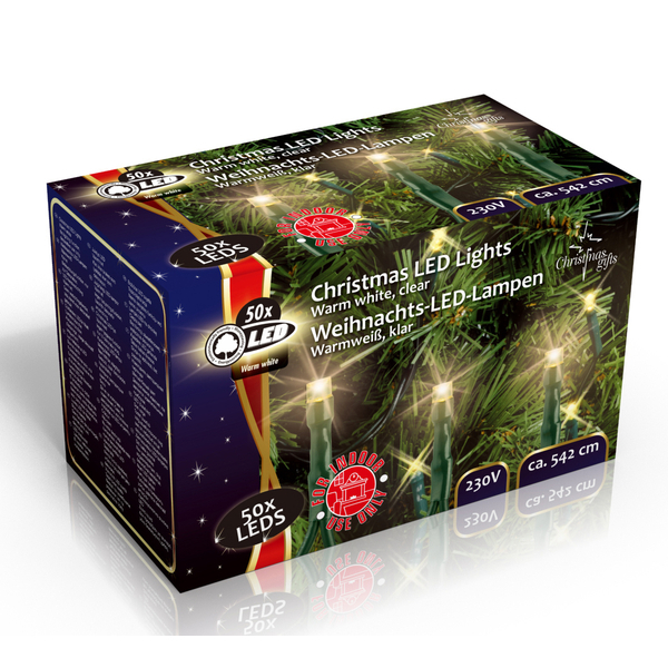 Vánoční vnitřní světelný řetěz 50x LED dioda teplá bílá, 230V, délka 5.5 m