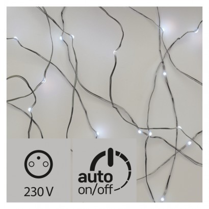 barva drátu: stříbrná|barva světla: studená bílá|časovač: ano|dálkový ovladač: ne|délka přívodu: 5 m|funkce: svítí|krytí: IP44|LED mezera: 10 cm|materiál: kov|možnost propojení: ne|počet LED: 40|použití: venkovní i vnitřní|příkon: 2,4 W|prodejní obal: 1 ks, krabice|produkt: nano řetěz|pro výšku...