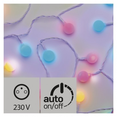 LED světelný cherry řetěz – kuličky 2,5cm, 4m, multic., čas.
