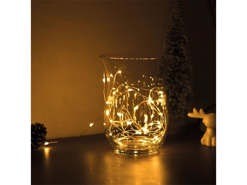 Oblečte váš byt do sváteční atmosféry s touto teplou bílou LED řetězem. Kabel je extra tenký, dobře ohýbatelný díky čemuž je téměř neviditelný. Můžete ji uložit na kterýkoliv bod vašeho domova, protože nepotřebujete zástrčku, baterie zajistí dlouhodobou, energicky úsporný provoz.