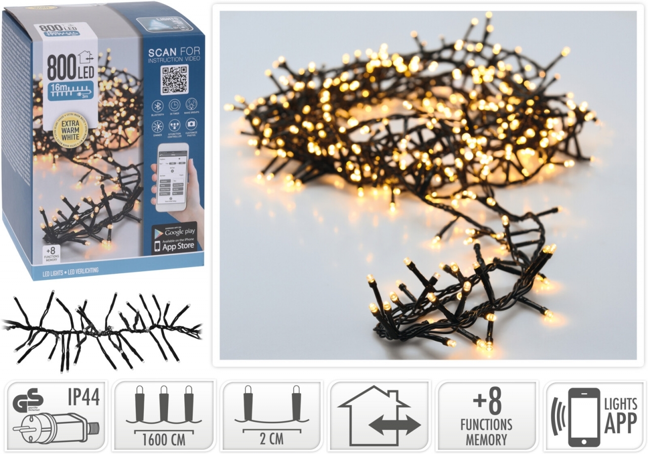 Světelný řetěz 800 LED 16 m, extra teplá bílá, mobilní aplikace