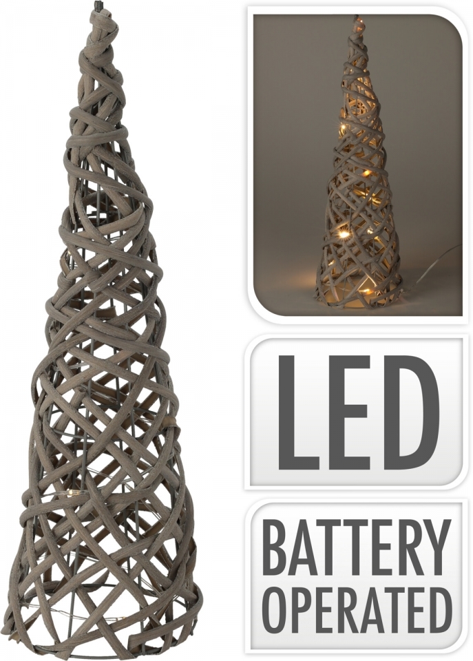Dekorativní jehlan z umělého ratanu s 10 LED diodami teplé bílé barvy. Napájení 2x AA bateriemi (nejsou součástí výrobku). Součástí adaptéru časovač 6/18 h.Materiál: umělý ratanBarva: šedá pranáRozměry:výška 40 cmprůměr 12 cmhmotnost 180 g prečítať celé