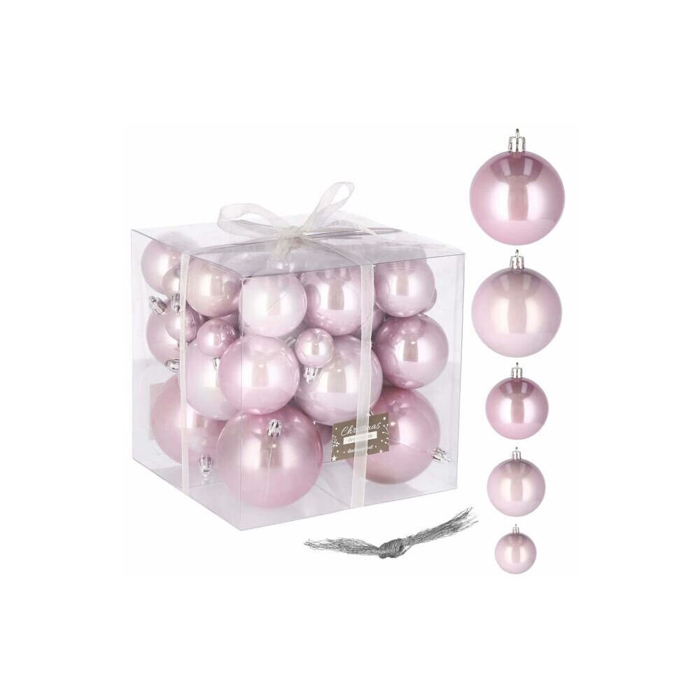Vánoční baňky růžové - 5 velikostí, sada 37ks