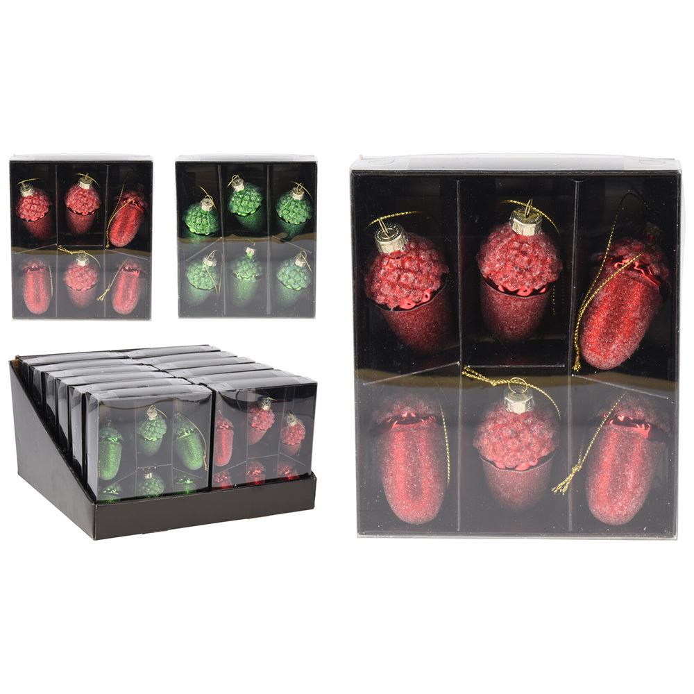 Vánoční ozdoby - žaludy 65 mm, červené, zelené (sada 6 ks)