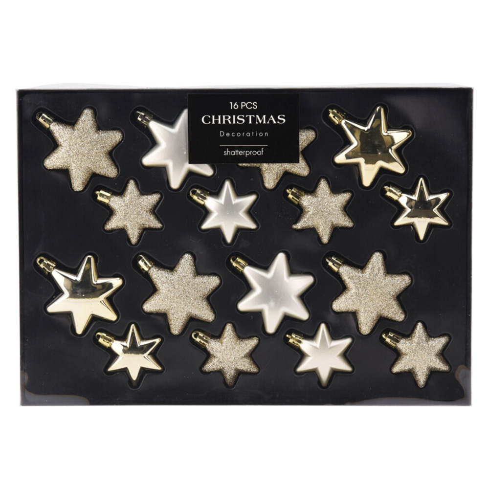 Vánoční ozdoby - hvězdy 60/50 mm (sada 16 ks) šampaň zlatá
