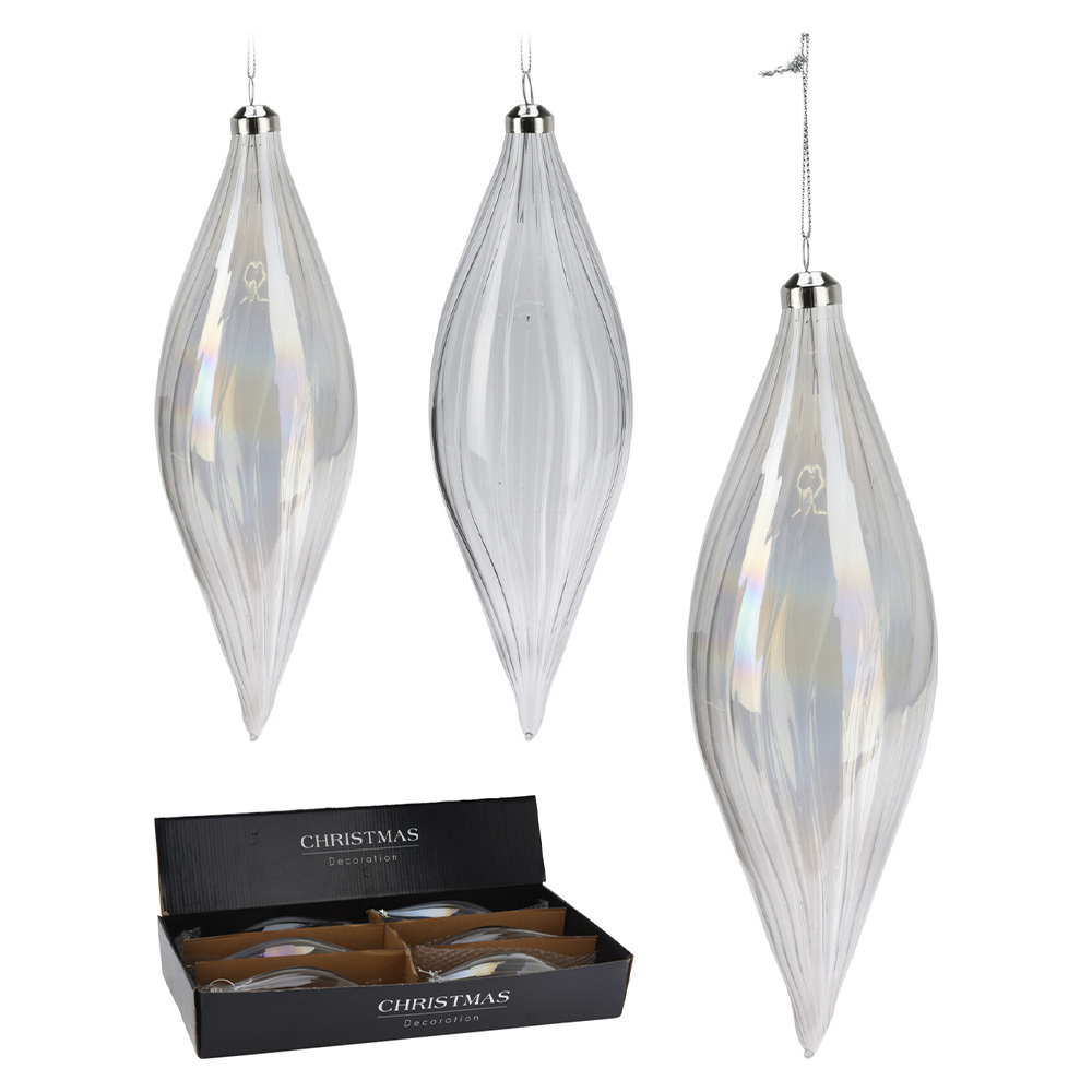 Vánoční skleněná ozdoba 21 cm, bílá (cena za 1 ks)