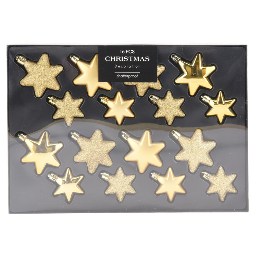 Vánoční ozdoby - hvězdy 60/50 mm (sada 16 ks) zlatá barva