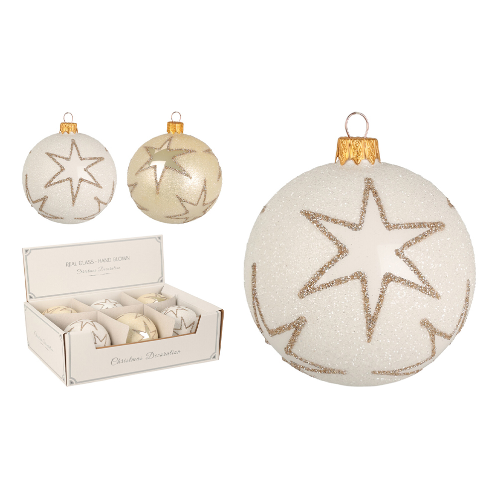 Vánoční skleněná koule 10 cm - ručně foukaná, bílá / krémová ve 2 designech