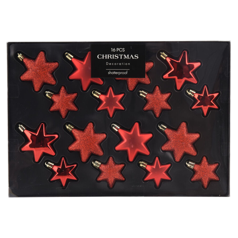 Vánoční ozdoby - hvězdy 60/50 mm (sada 16 ks) červené