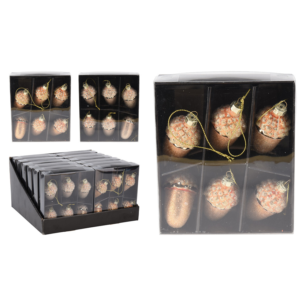 Závěsná dekorace - výzdoba, žaludy ve zlaté /šampaň-zlaté barvě.rozměr: 40x40x65 mmmateriál: sklocukrovaný dekorbarevnou variantu vyberte v poli nad cenovkouCena je za 1 sadu. prečítať celé