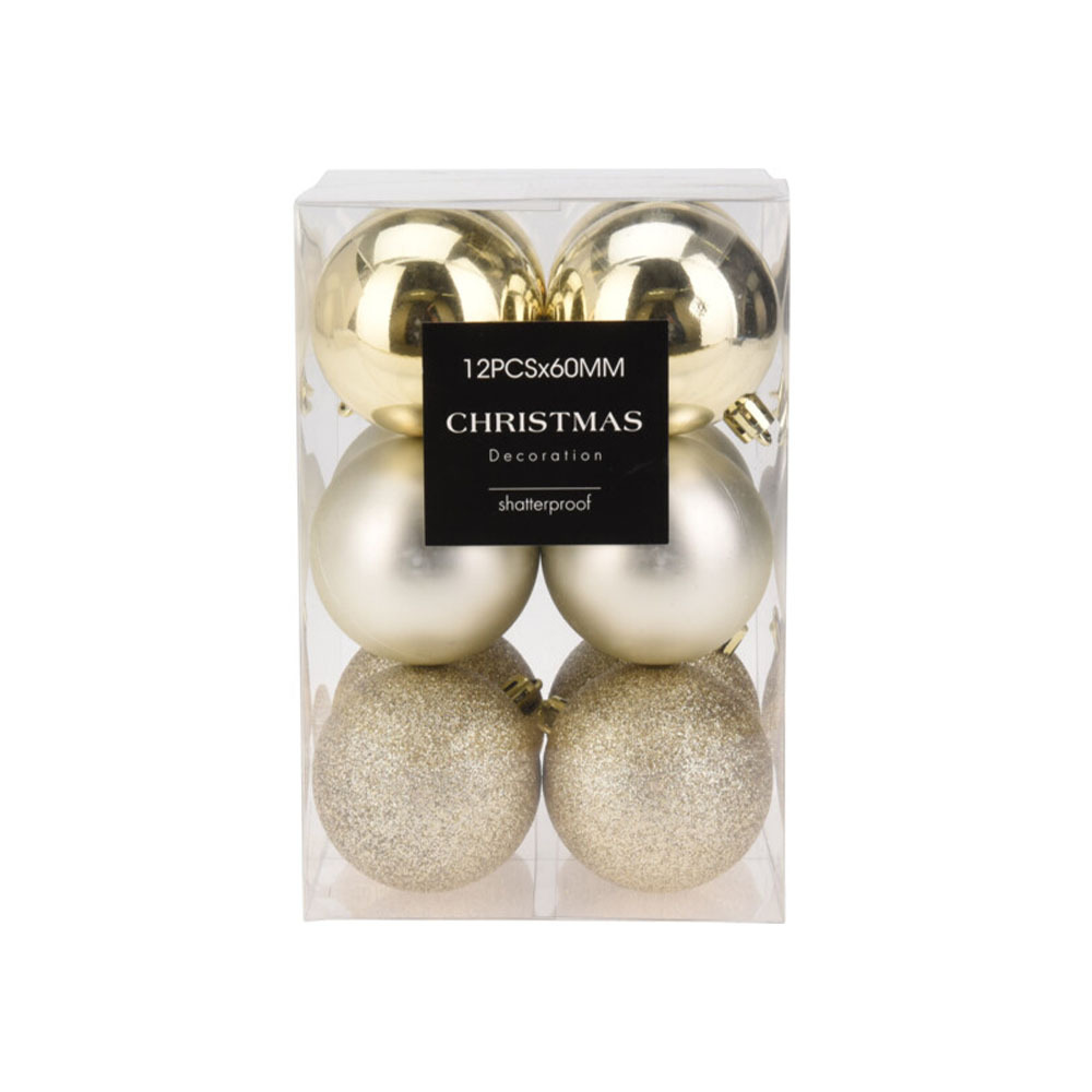 Vánoční koule 60 mm, směs šampaňského (sada 12 kusů)