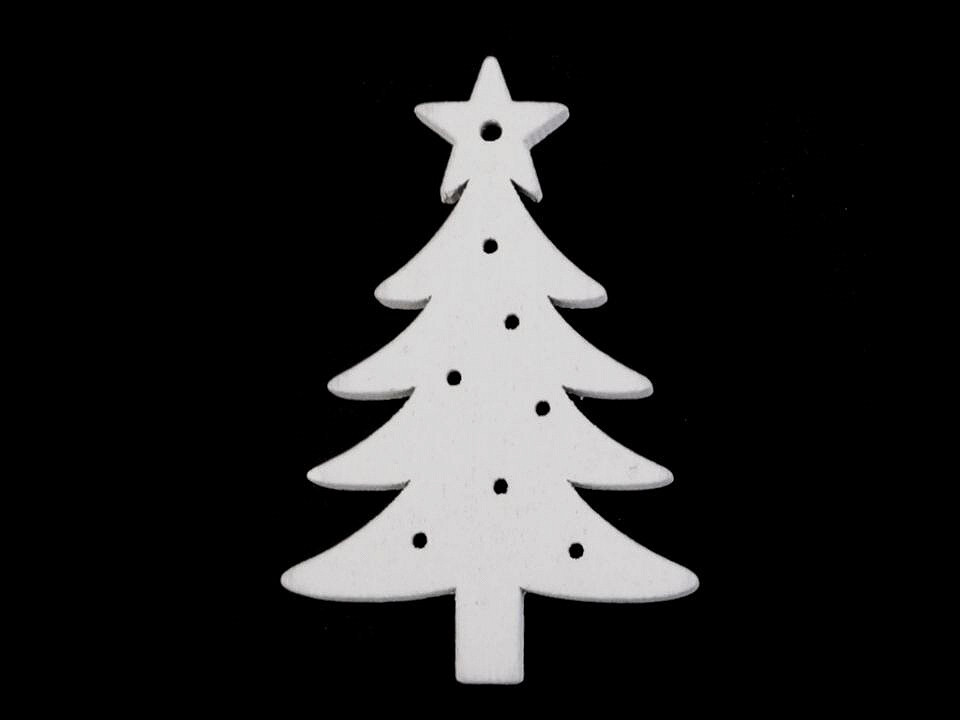 Dřevěné dekorace vánoční vločka, hvězda, stromeček, zvoneček, koník, sob k zavěšení / k nalepení - 72 ks - 3 bílá strom