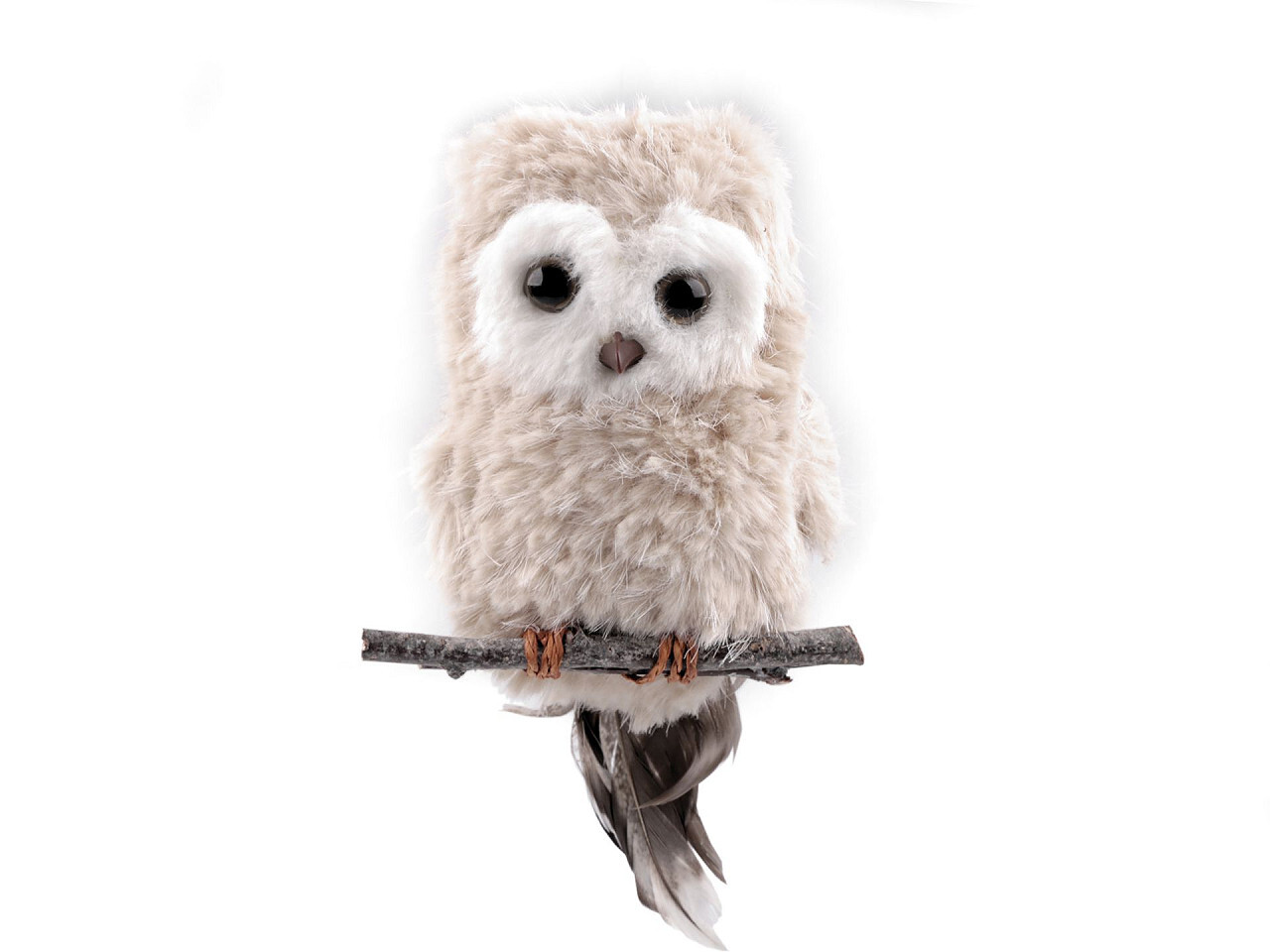 Dekorace sova k zavěšení - 1 ks - 2 béžová světlá