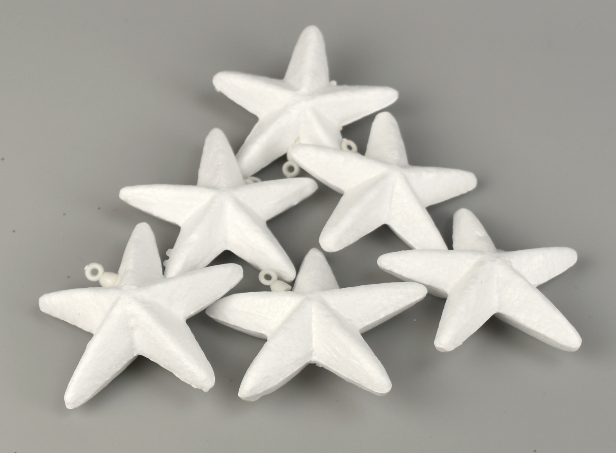 Hvězdy vyrobené z tvrzeného polystyrenu jsou určené k výrobě dekorací. Na jeho povrchu nádherně vynikne malba nebo můžete nalepit efektní třpytivé prášky (glitter), látku, korálky, flitry, organzu atd.