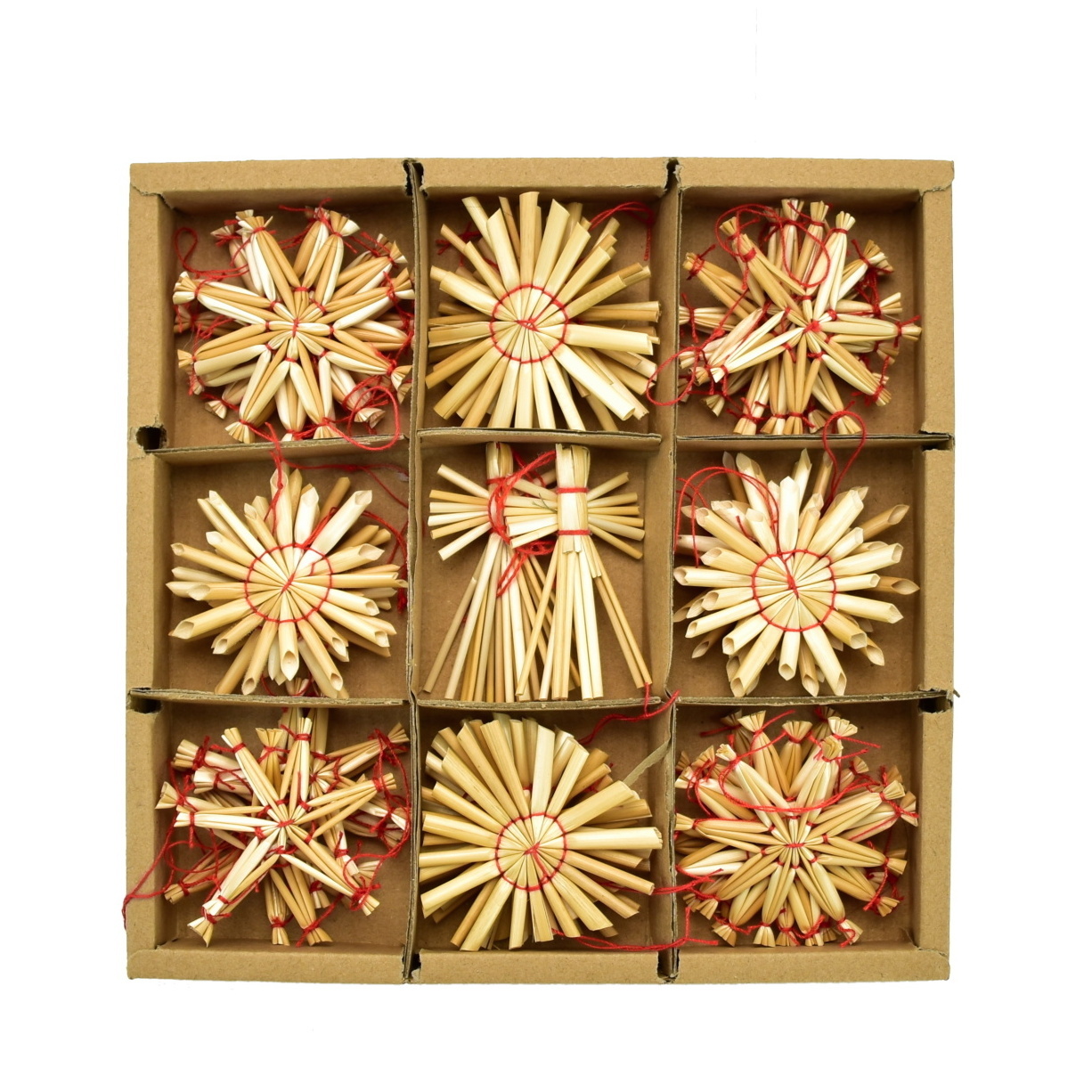 Originální slaměné vánoční ozdoby s červeným prošíváním