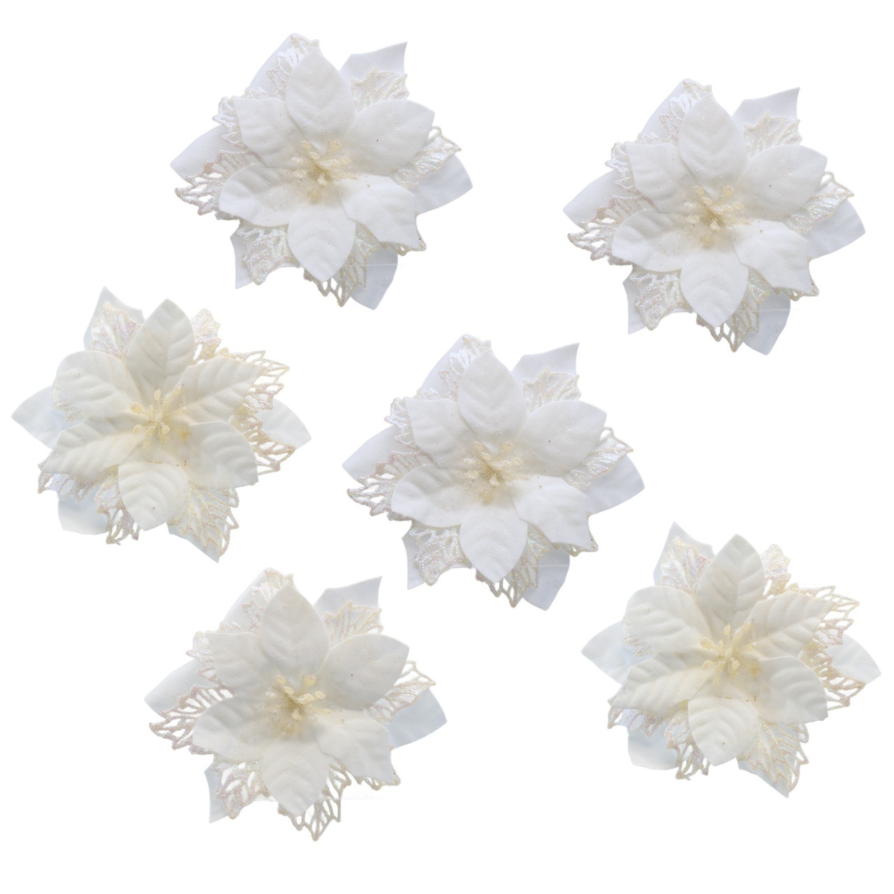 Ponsetie bílé s klipem Ø15 cm, 6 ks