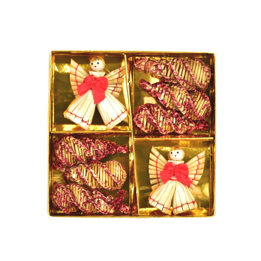 Slaměné andělíčci a spirálkyPopis produktu:Tyto slaměné andělíčky a spirálky jsou vyrobeny z kvalitních materiálů, které zaručují jejich trvanlivost a odolnost.Barva těchto slaměných andělíčků a spirálek je ohromující červená, která okamžitě přitáhne pozornost.Obsahuje 6 ks andělíčků a 2 ks...