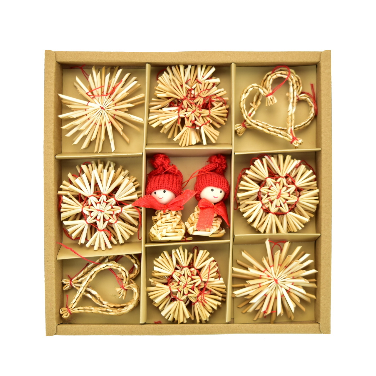 Slaměné vánoční ozdoby. 30 ksTyp ozdob: SlaměnéMnožství: 30 ksZabaleno v: BoxuDoplněk: VánočníBarva: Přírodní s červeným prošívánímVelikost krabičky: Výška 20 cm / Šířka 20 cmTyto slaměné vánoční ozdoby jsou ideálním doplňkem pro váš vánoční stromek. S jejich přírodní barvou a červeným...