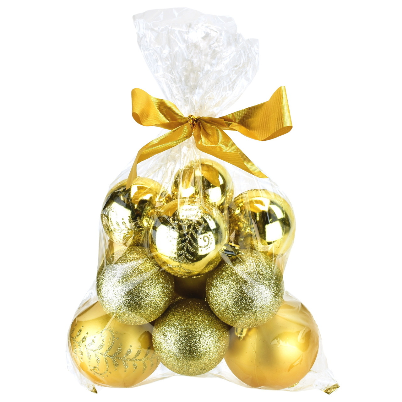 Vánoční koule v sáčku, assort, zlaté, 14 ks