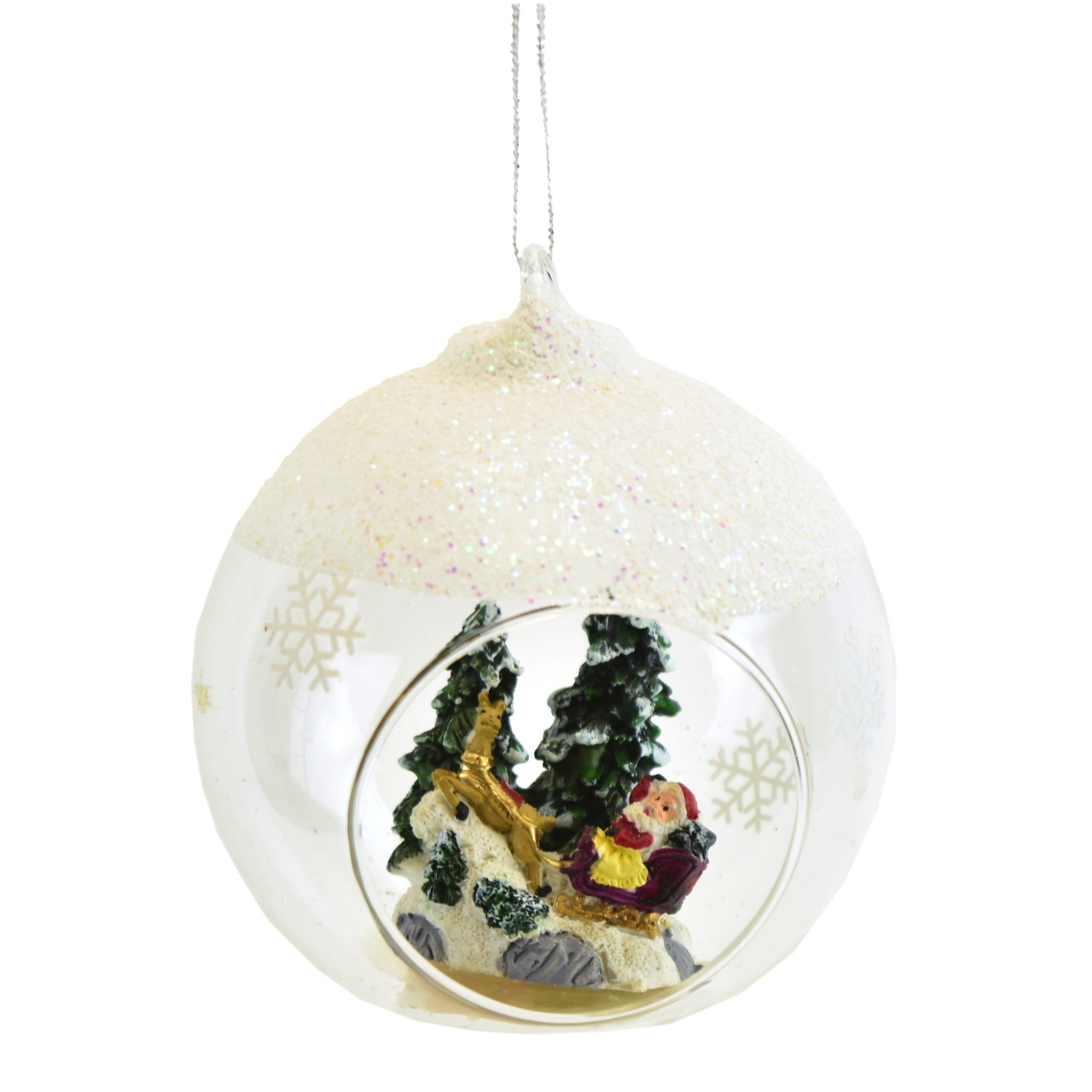 Zahalte váš vánoční strom čarovnou atmosférou s touto skleněnou koulí se Santou dekorací. Koule je vyrobena ze skla a má průměr 8 cm. Její nádherný design a detaily Santy jsou vytvořeny z vysoce kvalitního polystone. Tato závěsná koule přinese do vašeho domova dávku vánočního kouzla a stane se skvělým doplňkem pro váš strom či dekoraci. Vytvořte si úžasnou a chytlavou atmosféru na Vánoce s touto skleněnou koulí se Santou!