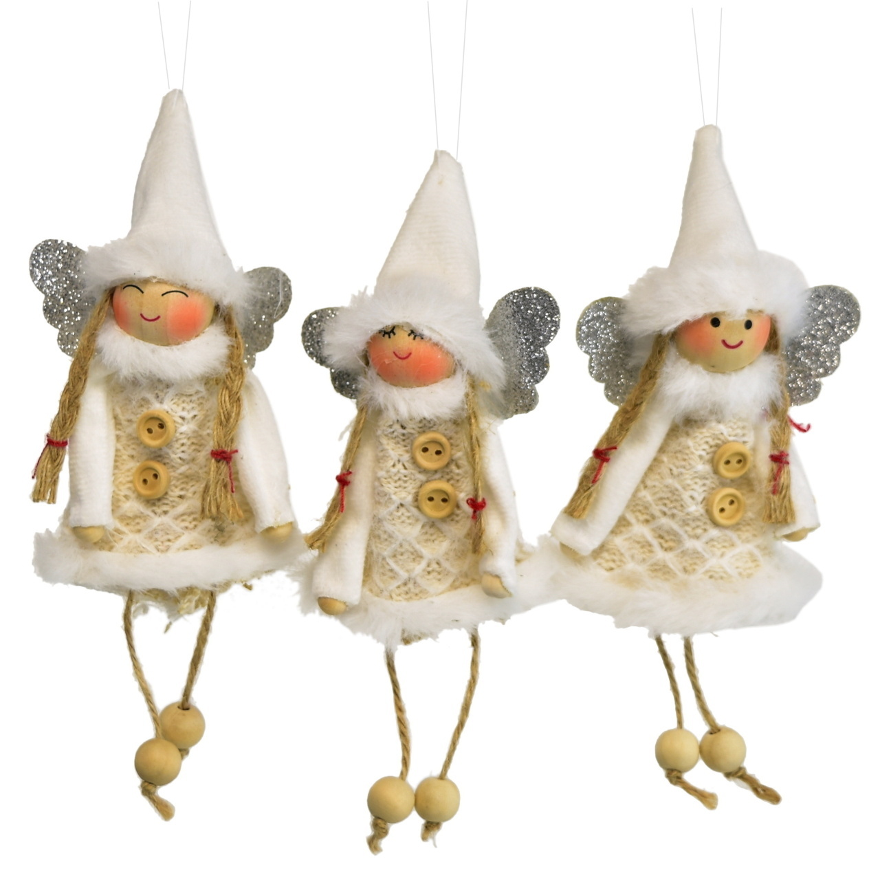 Andílci s čepičkou 3 ks - 10 cm Popis produktu: - Balení obsahuje 3 krásné andílky s čepičkami - Velikost každého andílka je 10 cm - Andílci mají nožičky a provázek pro snadné zavěšení - Vyrobeno z příjemné látky a dalšími detaily Tři andílci - jedna nádherná dekorace: Tyto roztomilé andílci...