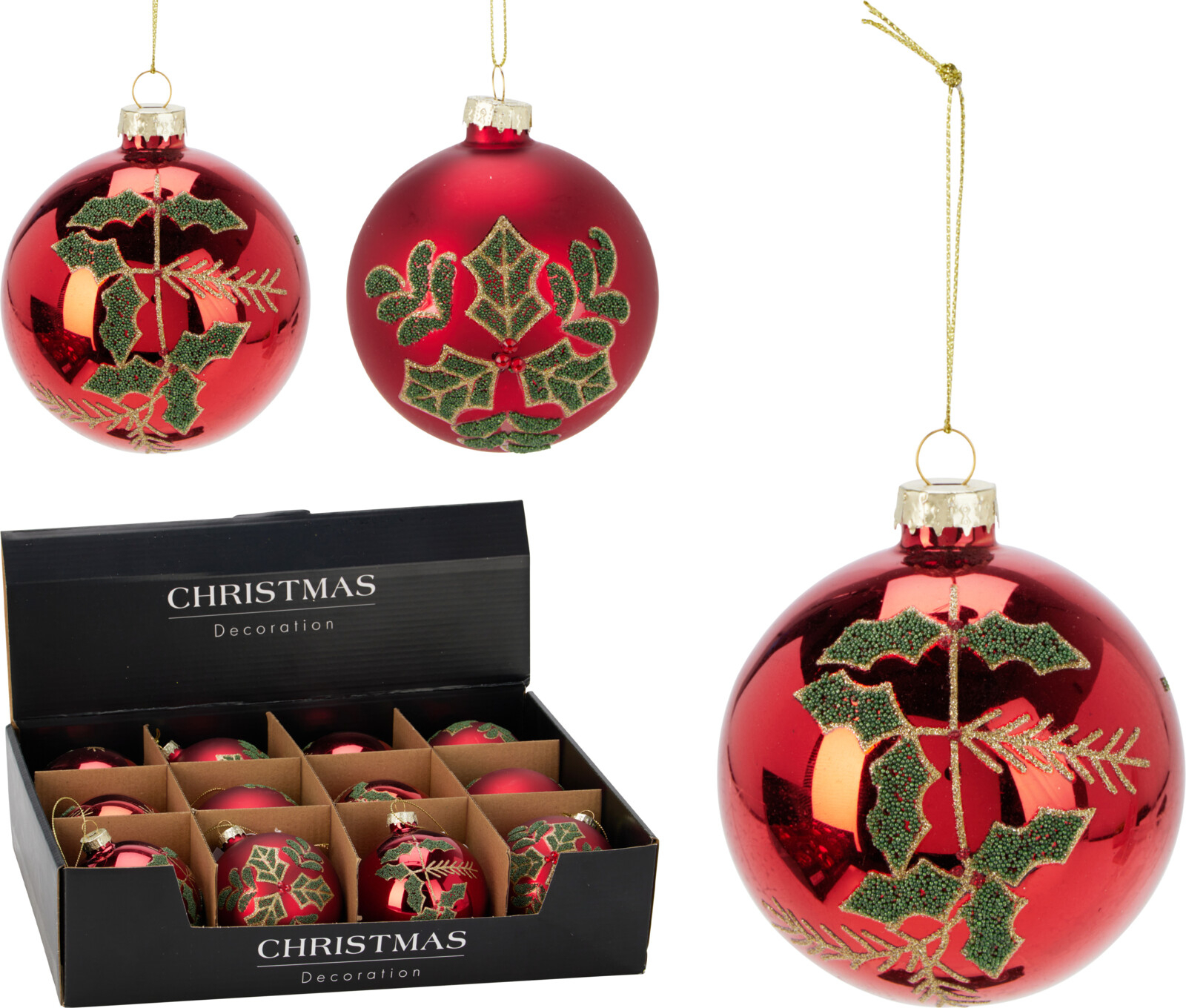 Bombka szklana świąteczna 8CM czerwona2 wzory
